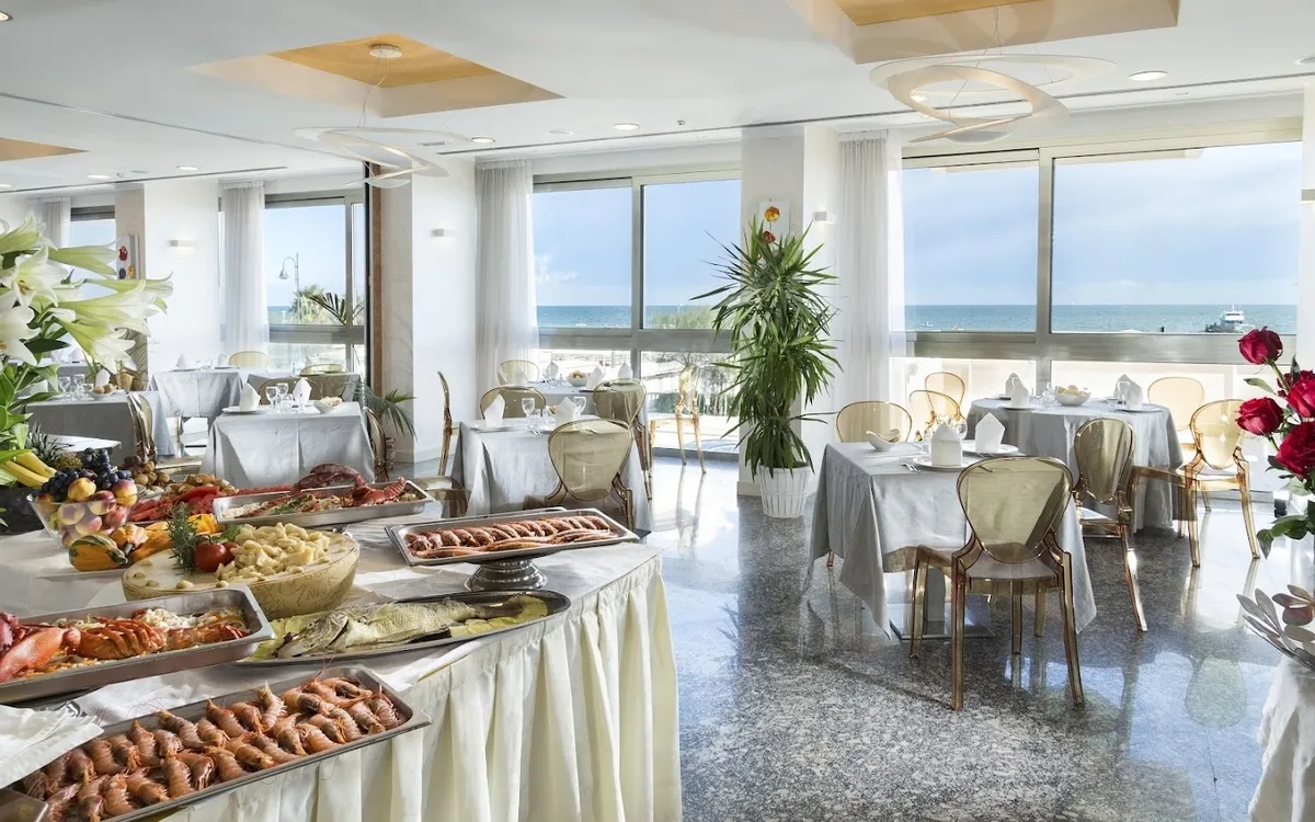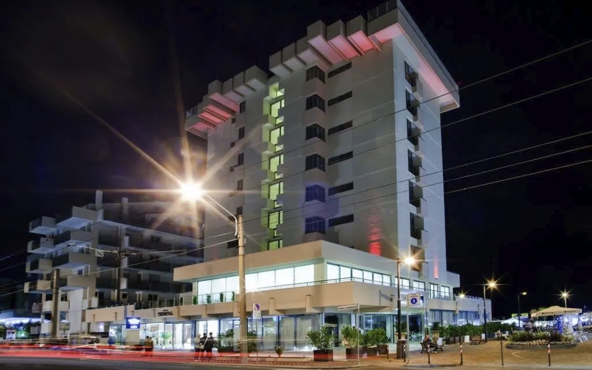 Das 4*-Hotel Terminal Palace liegt in Miramare, einem eher ruhigeren Stadtteil von Rimini. Das Hotel eignet sich daher perfekt fĂĽr alle, die während ihrem Urlaub in Italien Ruhe und Entspannung suchen. Das Hotel liegt direkt am Strand und euren exklusiven Strandabschnitt Golden Beach 119 erreicht ihr daher in circa 10 Gehminuten. Dort könnt ihr es euch auf einer der unzähligen Strandliegen gemĂĽtlich machen und mit euren Freunden die italienische Sonne genieĂźen. In der unmittelbaren Umgebung des Hotels findet ihr einige Bars, CafĂ©s, Restaurants oder Shoppingmöglichkeiten. Wer doch lieber Lust auf Party hat, erreicht den legendären Carnaby Club nach einem etwas 20-minĂĽtigen Spaziergang entlang der Strandpromenade oder einfach mit den öffentlichen Verkehrsmitteln. Eine Haltestelle befindet sich in unmittelbarer Nähe des Hotels.   Â